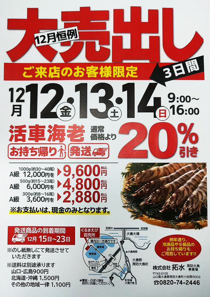 ひろしま夢ぷらざ「やまぐち商工会セレクションフェア」に田中海産が出品