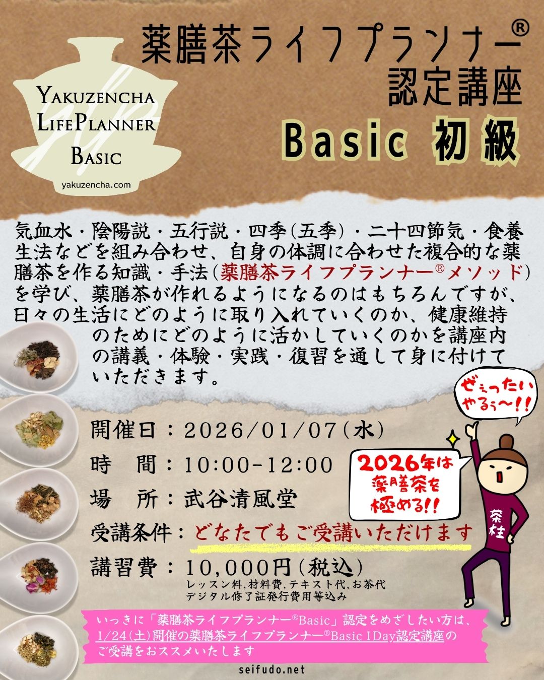 【募集】01/07(水)薬膳茶ライフプランナー®Basic初級