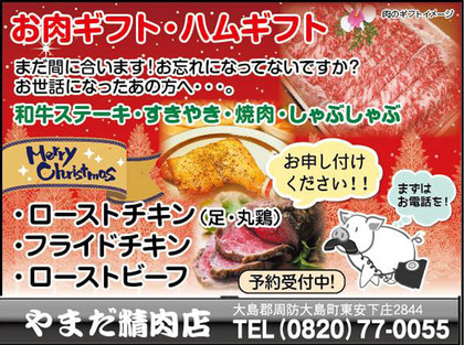 いよいよ、今年も残すところあと11日となりました。年末・年始のごあいさつやギフトには、やまだ精肉店のお肉&ハムギフトがたいへん喜ばれます地方···